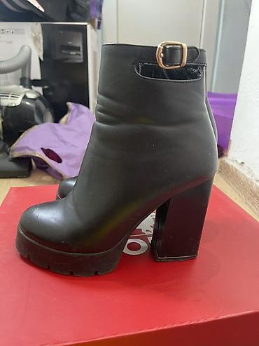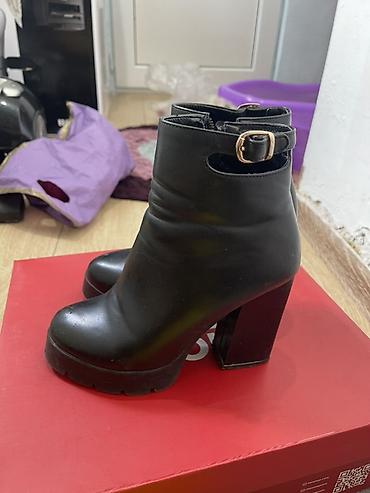 Черные женские полуботинки-ботильоны на высоком устойчивом каблуке.