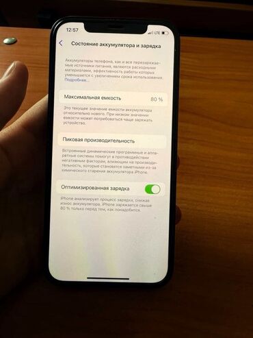 - Аккумулятор: в разделе «Состояние аккумулятора и зарядка» отображается максимальная емкость 80%, включена «Оптимизированная зарядка».