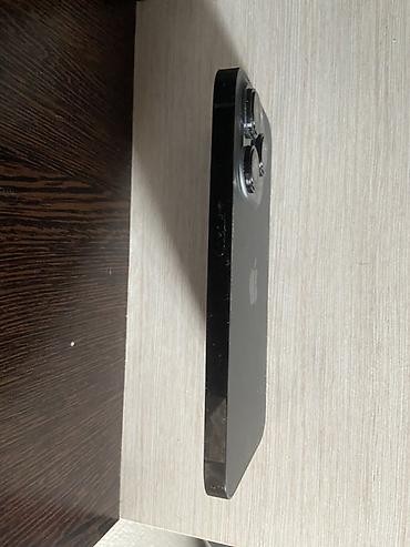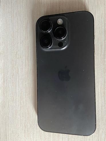 IPhone с тройным модулем камеры и вспышкой, цвет — черный (графитовый). Плоские грани, вырез Dynamic Island на экране — дизайн актуальных поколений Pro.