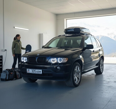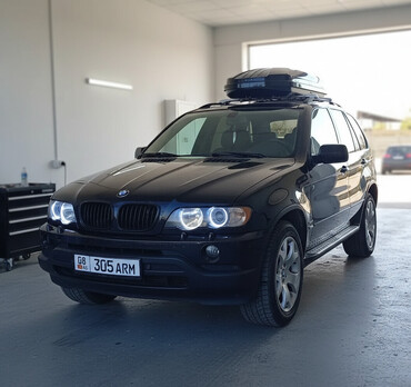 BMW X5 (E53) — черный кроссовер с оригинальным дизайном и практичным оснащением.