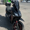 Скутер/макси-скутер черного цвета. Особенности: - Городской пластик