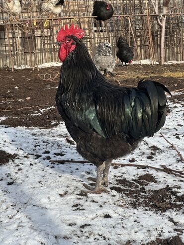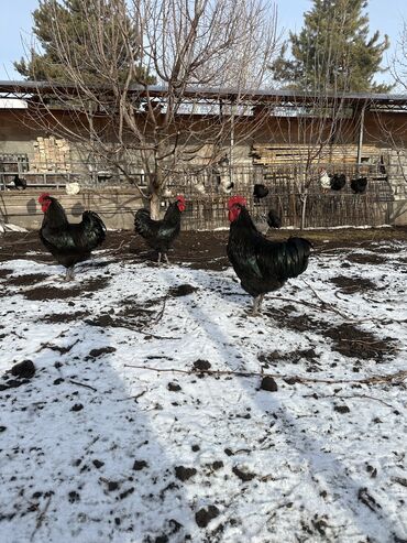 - Крупные петухи с плотным, угольно‑черным оперением и зеленым металлическим отливом.