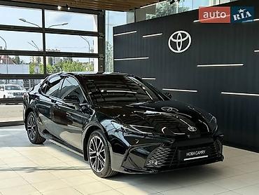 Toyota Camry (актуальное поколение), черный седан бизнес‑класса.