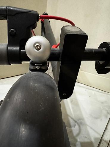 - Порт зарядки на передней стойке; зарядка подключается к боковому гнезду (кабель на фото).