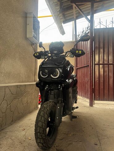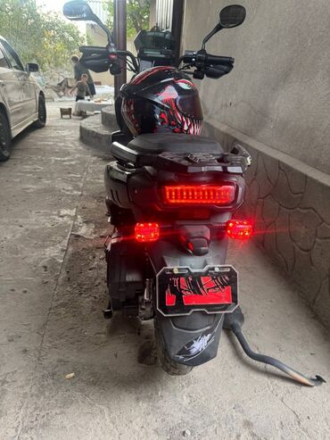 Скутер (малокубатурный) в агрессивном городском стиле. Характеристики и особенности: - Черный матовый пластик, спортивный обтекатель и ветровое стекло. - Светодиодная оптика: ближний/дальний свет,...