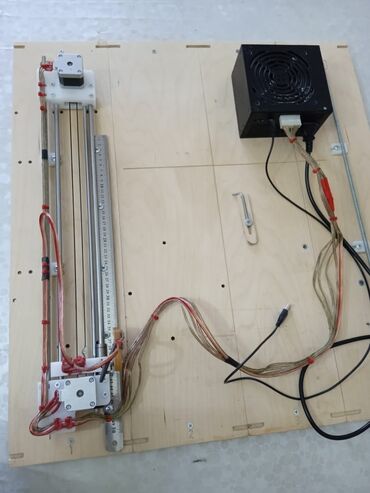 Чертежный станок для рисования, установленный на деревянной панели, представляет собой устройство, способное воспроизводить изображения. Он оснащен двумя шаговыми двигателями, которые обеспечивают точное позиционирование и перемещение. Направляющие из металлических стержней гарантируют плавность хода, а линейка, закрепленная вдоль одной из направляющих, позволяет контролировать размеры и точность рисунка. Устройство включает в себя блок питания для обеспечения стабильной работы. Такой станок подходит для создания различных чертежей, схем, а также для художественного творчества, обеспечивая высокую точность и повторяемость. Он может быть использован в образовательных целях, для хобби или в малом производстве.