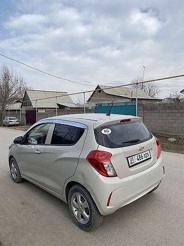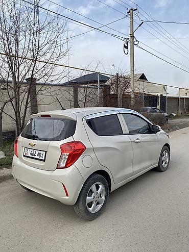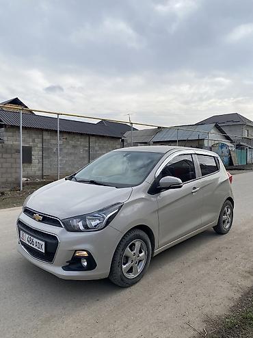 Chevrolet Spark, хэтчбек 5 дв., бежевый цвет кузова. Компактный городской автомобиль с экономичным бензиновым двигателем и передним приводом.