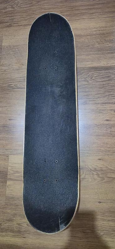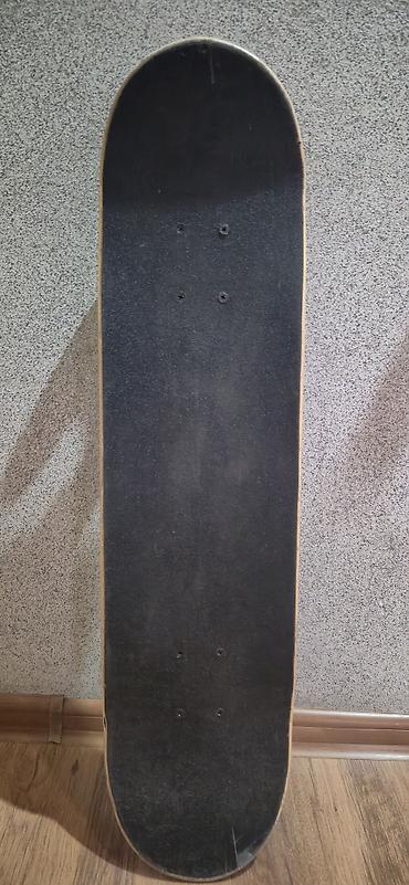 - Дека классической формы с двойным киктейлом. Верх — черный шкурка (griptape) по всей поверхности для надежного сцепления.