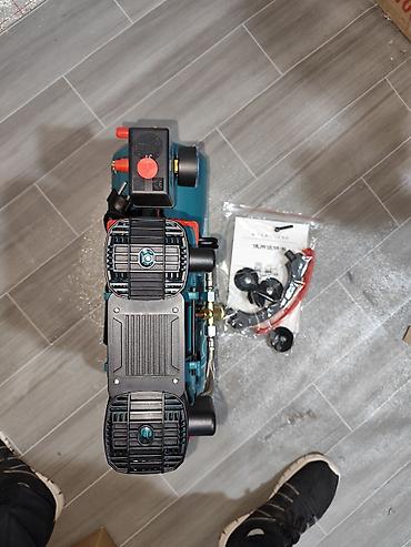 Комплектация на фото: компрессор TEFENG TF-1380-9, манометр, блок управления, комплект аксессуаров/фурнитуры и руководство. Подходит для накачки, продувки, работы с пневмоинструментом малой и средней мощности, аэрографии, ремонта и обслуживания техники.