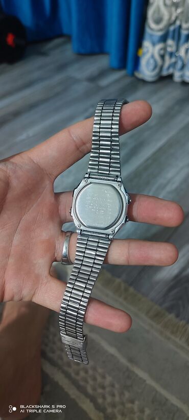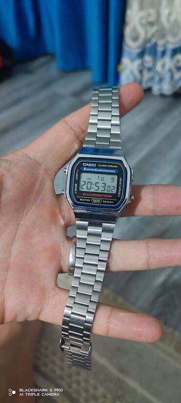 - Задняя крышка на винтах, маркировка CASIO A168, нержавеющая сталь (stainless steel back).