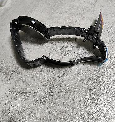 - Корпус и браслет: черный металлический браслет с раскладывающейся застежкой, круглый корпус.