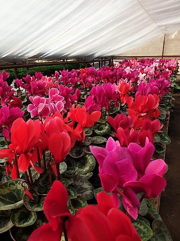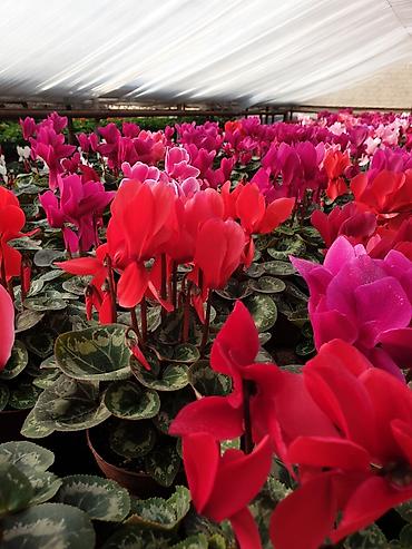 Цикламены в горшках (Cyclamen persicum) — яркие цветущие растения для дома и офиса.