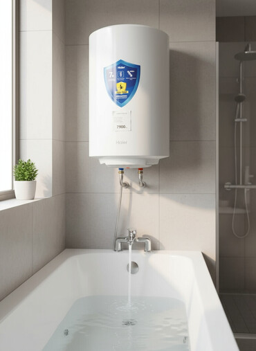 Белый накопительный водонагреватель Haier, предназначенный для бытового использования. Модель имеет цилиндрическую форму и оснащена технологией Shock Proof, обеспечивающей электробезопасность. Водонагреватель подходит для установки в помещениях, требующих надежного и безопасного нагрева воды. Изделие отличается современным дизайном и нейтральным белым цветом, что позволяет ему гармонично вписаться в интерьер ванной комнаты или кухни. Технология Shock Proof гарантирует защиту от поражения электрическим током при любых условиях эксплуатации, что делает его безопасным выбором для дома.