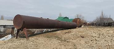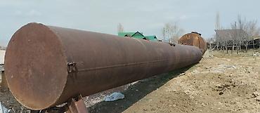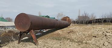 - Ориентировочные габариты (по фото): длина основной емкости около 10–12 м, диаметр порядка 1,4–1,8 м; вторая емкость короче, но толще по диаметру
