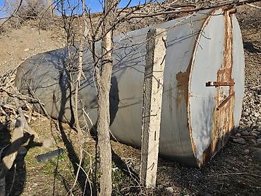 Горизонтальная стальная цистерна большого объема 50м³.ёмкость находится в Оше. Описание: - Материал: толстостенная сталь, цилиндрический резервуар с плоскими днищами. - Конструкция: горизонтальная...