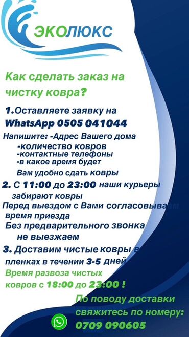 Стирка ковров, | Палас, Ала-кийиз, Шырдак, Самовывоз, Бесплатная доставка, Платная доставка