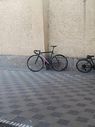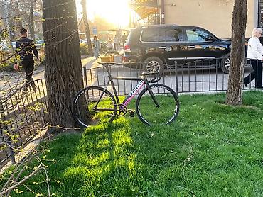 Фикс-байк/синглспид городской велосипед - Рама и вилка: стальная, дорожная геометрия, окраска – пастельно‑розовая с белыми логотипами - Колеса: 700C, высокие ободья, покрышки шоссейного типа - При...
