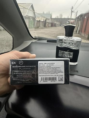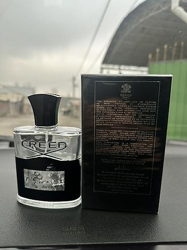 - Флакон с металлической эмблемой и черной лентой, крупная гравировка CREED на «плечах».