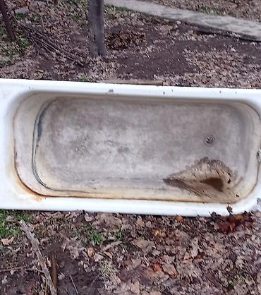 Чугунная ванна прямоугольная, классический размер около 150–70см . сделано в СССР. вывоз с дачи Ппнорамма.Белое эмалевое покрытие, слив в ногах, перелив сбоку. Подходит для установки в доме, а также для хозяйственных нужд на участке: поилка/купальня для животных, емкость для полива, замачивания, бочки-ванны для купания на даче, умывальник для мастерской, клумба или декоративный водоём. Толстостенная чугунная чаша держит тепло и устойчива к механическим нагрузкам. Есть штатные отверстия под слив-перелив и крепление сифона.