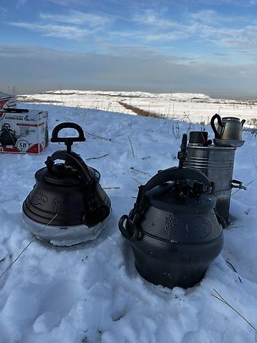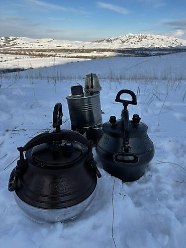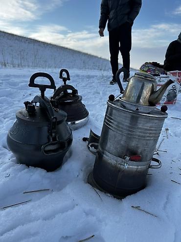 - Дополнительно на фото: металлический самовар/походная печь для кипячения воды.