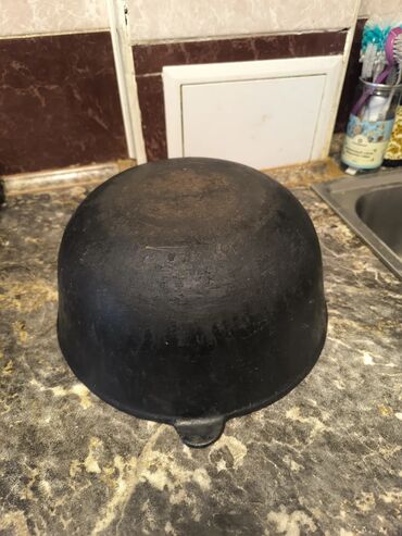 Большой чугунный казан для костра/мангала, Советский СССР. - Материал: толстостенный чугун - Форма: полусферическая, глубокая - Диаметр (визуально): около 70–80 см - Вместимость: подходит для приг...