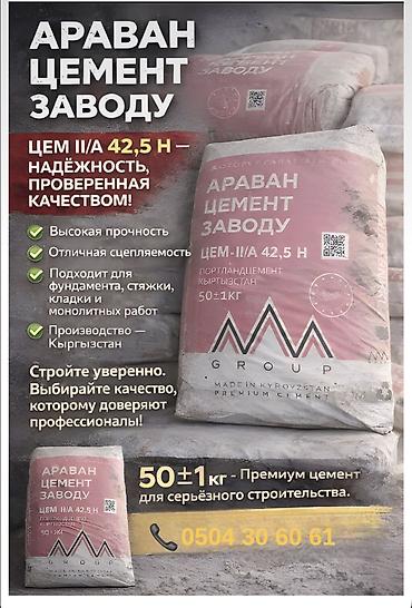 Портландцемент М-500 (50±1 кг) - Тип: портландцемент М-500, универсальный для строительных и ремонтных работ. - Упаковка: мешки по 50±1 кг. - Производство: Кыргызстан (маркировка «Чуй цемент», «Ma...