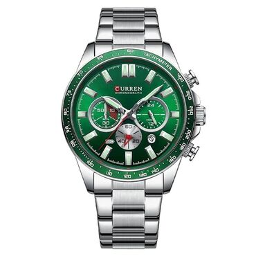 Это мужские часы модел M8418 с хронографом, кварцевым механизмом и стальным браслетом.⚡