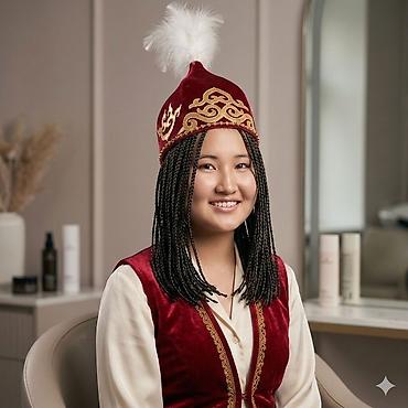 Национальный женский головной убор с бахромой и бисером все ручная работа - Материал: мягкий бархат светло-серебристого оттенка. - Форма: квадратная тюбетейка/корона с жёсткими бортиками. - Декор:...