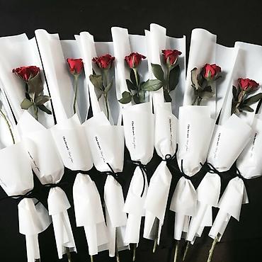 Цветочные композиции и одиночные розы/тюльпаны в стильной упаковке.