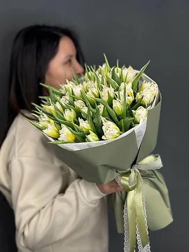 Тюльпаны оптом упакованные в крафт - Ассортимент цветов: белые