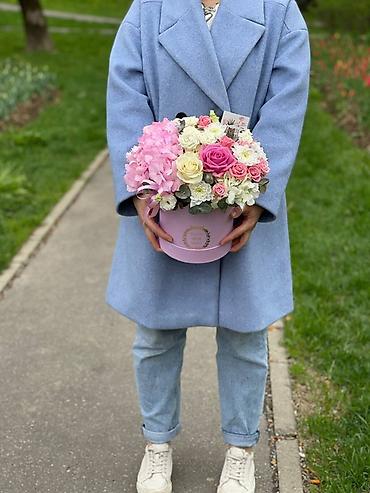 Авторские букеты из свежих роз и гортензий - Разнообразие композиций: пионовидные кремовые розы, нежные розово-белые розы, яркие кустовые розы, микс-гортензии пастельных оттенков. - Плотная шляпна...
