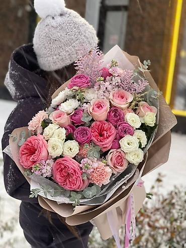 Авторские букеты из свежих цветов - Розы разных сортов и оттенков