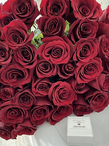 Букеты из красных роз - Классические красные розы с плотными бархатистыми бутонами - Длинные прямые стебли с насыщенно‑зелёной листвой - Яркий, выразительный цвет, подходящий для признаний, юбилее...