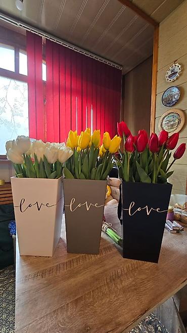 - Возможность собрать букет из тюльпанов нужного цвета и количества или выбрать готовую композицию из каланхоэ.