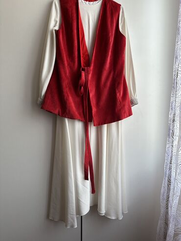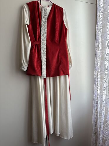 Детский национальный костюм для девочки (комплект) Состав комплекта: - Платье с длинным рукавом: верх из черной ткани с красной вышивкой и пайетками, круглый вырез, пояс-завязки на спинке; пышная ...