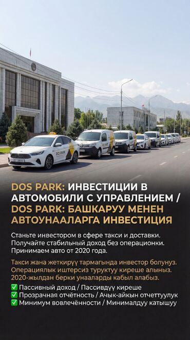 Станьте инвестором в сфере такси и доставки вместе с DOS PARK и получайте стабильный доход, не погружаясь в операционку.