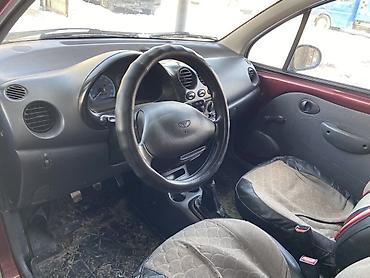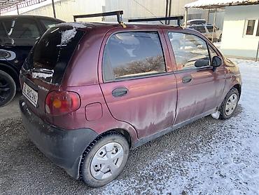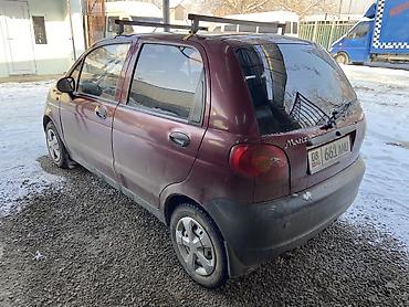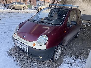 Практичный и экономичный городской автомобиль с удобным доступом в салон и дополнительными возможностями перевозки благодаря верхнему багажнику. Подходит для ежедневных поездок и хозяйственных задач. Цвет кузова: бордовый с контрастными элементами. Номерные знаки KG. На кузове — шильдик Matiz.