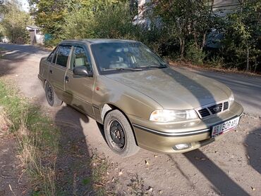 Daewoo Nexia седан, серебристый цвет. - Кузов: 4 двери, тонированные задние стекла. Бамперы перекрашены, на заднем и переднем — заметные следы облезшей краски; по кузову видны царапины и «жуки». ...