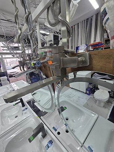 - На витрине представлены модели с термостатическим и классическим смесителем (по маркировкам на ручках).