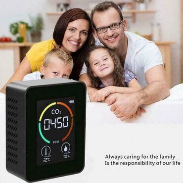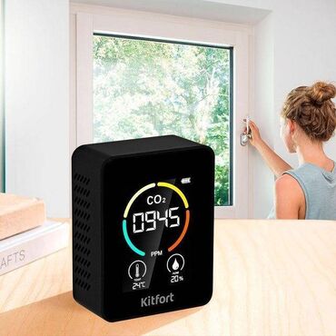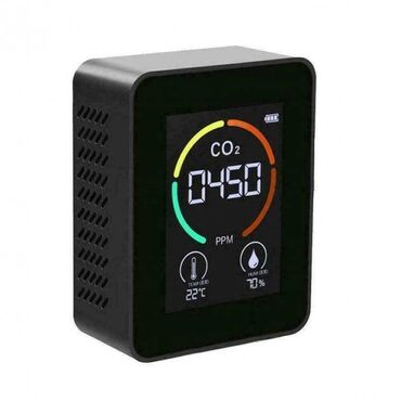 CO2 – продукт нашего дыхания, и чем больше людей в помещении, тем быстрее растет его концентрация. Если при уровне углекислого газа 600-800 ppm вы чувствуете себя нормально, то при уровне более 1000 ppm появляется слабость, рассеянность, ощущение духоты. Датчик концентрации углекислого газа представляет собой компактное устройство с небольшим дисплеем.