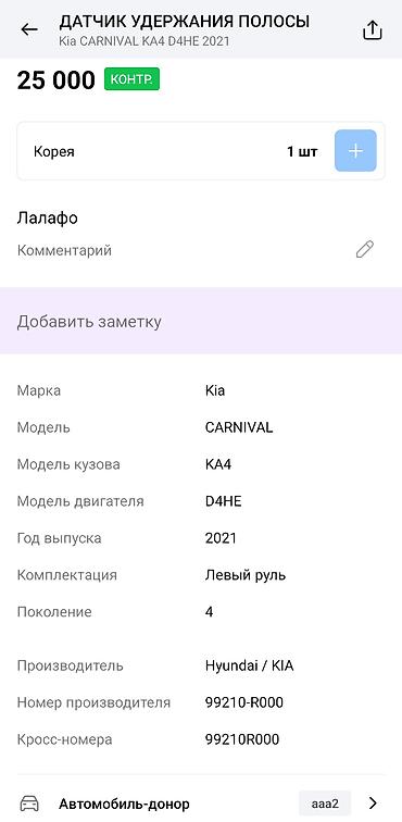 - Применяемость: Kia Carnival KA4, двигатель D4HE, поколение 4, год 2021, левый руль