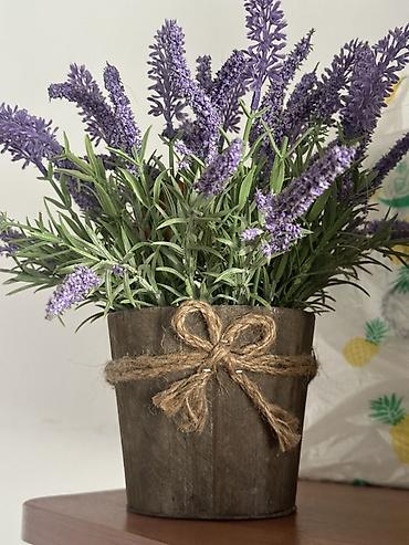 - Искусственная лаванда насыщенно‑фиолетового цвета с зелеными листьями.