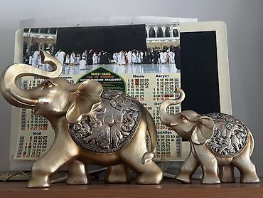 - Комплект из двух слонов разного размера, хоботы приподняты.