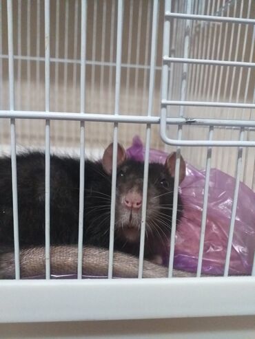 Продаю свою крыску мальчик 1 год и два месяца родился в сентябре очень его люблю но в последнее время заметила что началась аллергия неделя видео и фотоотчет продаю c клеткой не на корм!!!!! и не на спаривания!!!!! а чтобы любить и ценить !! надеюсь найду ему надёжных и любящих хозяев любит яблочки и огурцы на руках не сидит надо выгуливать хотябы 30 минут кормить кормом для крыс всегда чтоб была свежая и чистая вода нужен гамак и уборка клетки раз в неделю можно 2 раза все вопросы в личку!!! не серьёзных прошу не беспокоить НАХОДИМСЯ РАЙОН ПИШПЕК ТЕРМИЧЕКОГО***