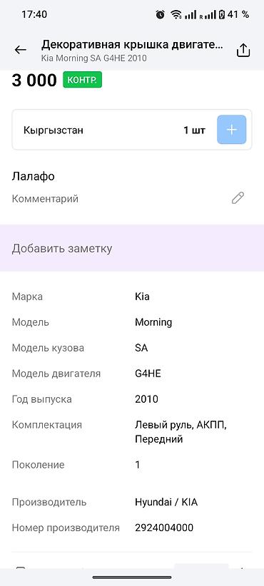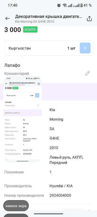 - Для автомобилей Kia Morning (Picanto) кузов SA, 1‑е поколение, двигатель G4HE, год 2010.