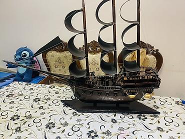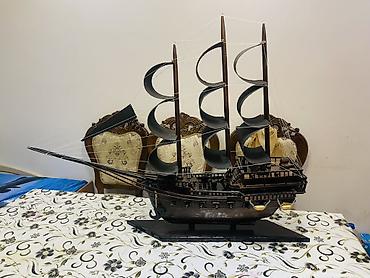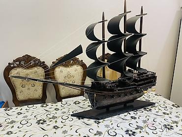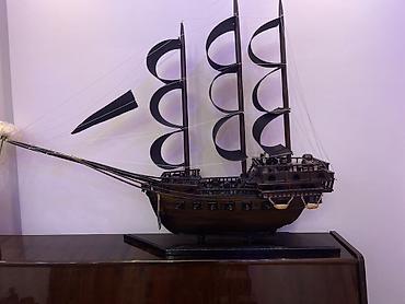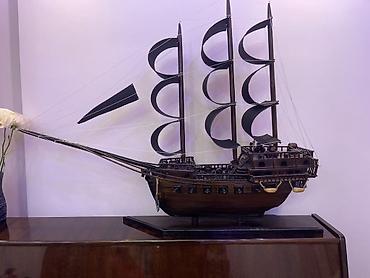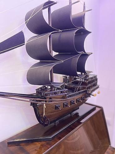 - Материал: дерево с темной тонировкой, такелаж из нитей, паруса из черного материала.