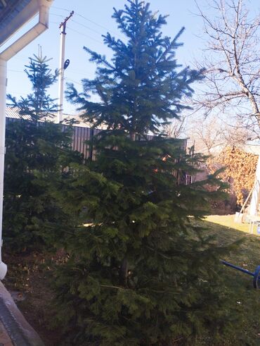 - Порода: хвойные ели (классическая конусная форма кроны, густое ветвление, мягкая темно‑зеленая хвоя).