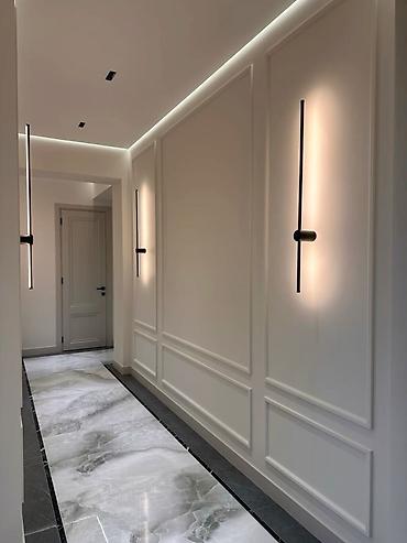 Поставляется комплектом: панели, молдинги, профили, фурнитура, подсветка по проекту. Монтаж и точная подгонка по месту, аккуратные примыкания к потолку и полу.