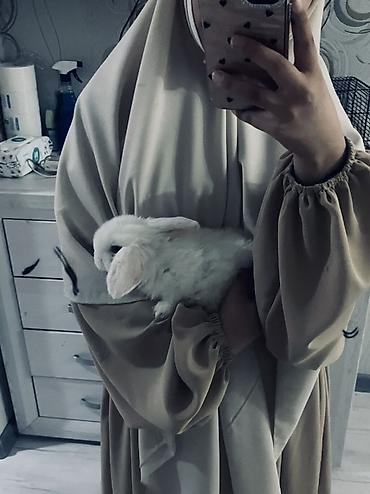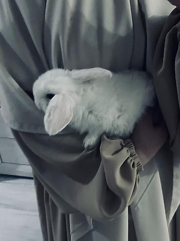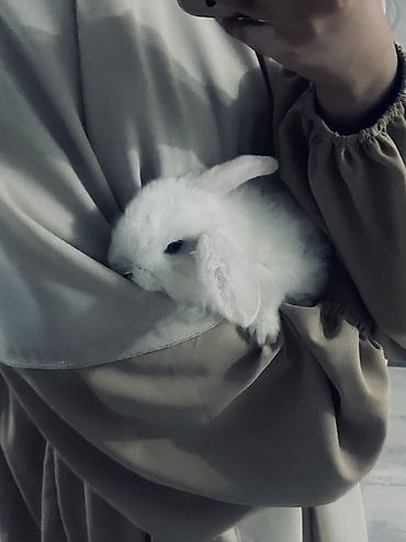 Белый декоративный кролик с висячими ушками (карликовый тип). Пушистая шерсть снежно‑белого цвета, компактное тело, спокойный характер — легко идет на руки и быстро привыкает к человеку. Подходит для домашнего содержания в квартире.