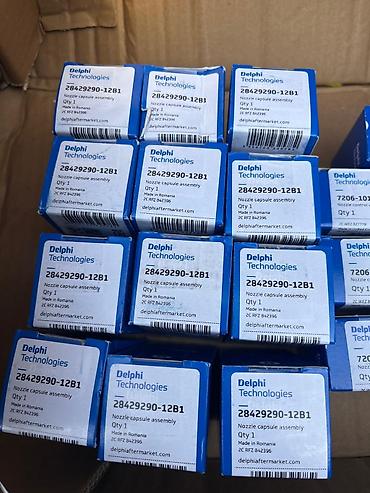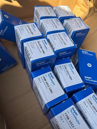 - Оригинальная продукция Delphi Technologies с фирменной маркировкой, штрих‑кодами и ссылками delphiaftermarket.com на упаковке.